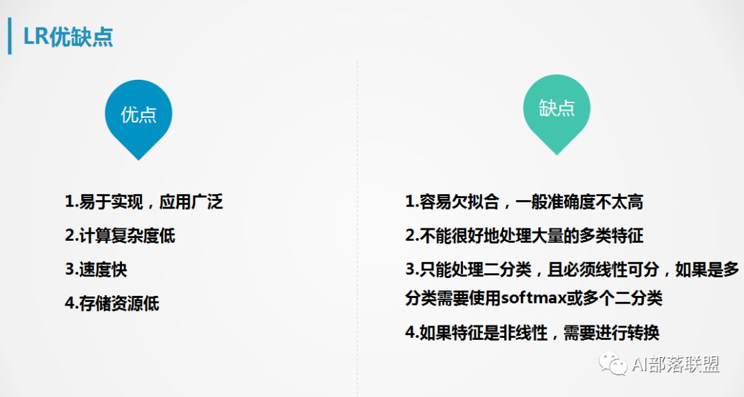 独立的变量不能有共线性、容易欠拟合、需大量样本、不能很好地处理大量的多类特征