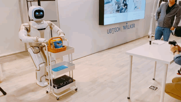 和一年前的Walker相比,全新的Walker在运动性能、柔性交互、环境感知等方面进行了算法迭代和功能提升。它不仅有36个高性能伺服关节以及力觉反馈系统,还拥有视觉、听觉和平衡等全方位的感知系统,结合优必选科技的AI技术,Walker实现了平稳快速的行走和灵活精准的操作,可以轻松应对各种服务场景。