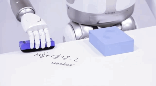 去年的Walker可以开门、开冰箱,今年的Walker学会了擦桌子,这一看似简单的动作中就涉及到力控,通过保持合适的力,Walker既不会损伤自己的手,也不会因为力太小而擦不干净桌面。