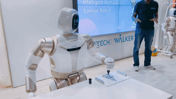 “文武双全”的Walker还会写字、作画呢,现场露了一手,让很多人类朋友都自愧不如。