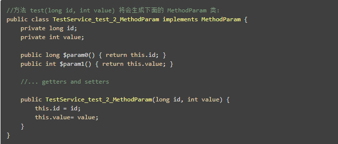 MethodParam 才是 Turbo 性能炸裂的真正原因。其基本原理是利用 ClassGeneration 对每个 Method 都生成一个 MethodParam 类,用于对方法参数的封装。这样做的好处有: