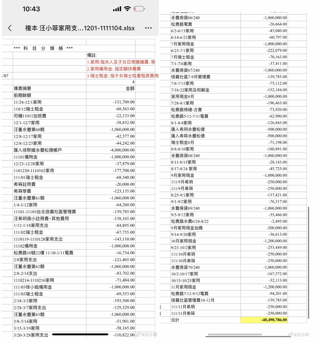 从最初关心高额“电费”——根据汪小菲晒出的账单,汪小菲两个月支付了电费新台币94201元,台湾的电费大约在2.85元新台币每度,大S和具俊晔两个月生活用了33101度电;到现在关心起“床垫”——汪小菲母亲在昨天的直播中爆料,“不换床垫”当然有理由,原因一是这个床垫价值200万,国际顶级大牌,换无可换。二是如此奢侈的床垫,汪小菲当时为了给大S找到最合适的,不惜浪费了十张,现在这个床垫是最适合大S腰部软度的。