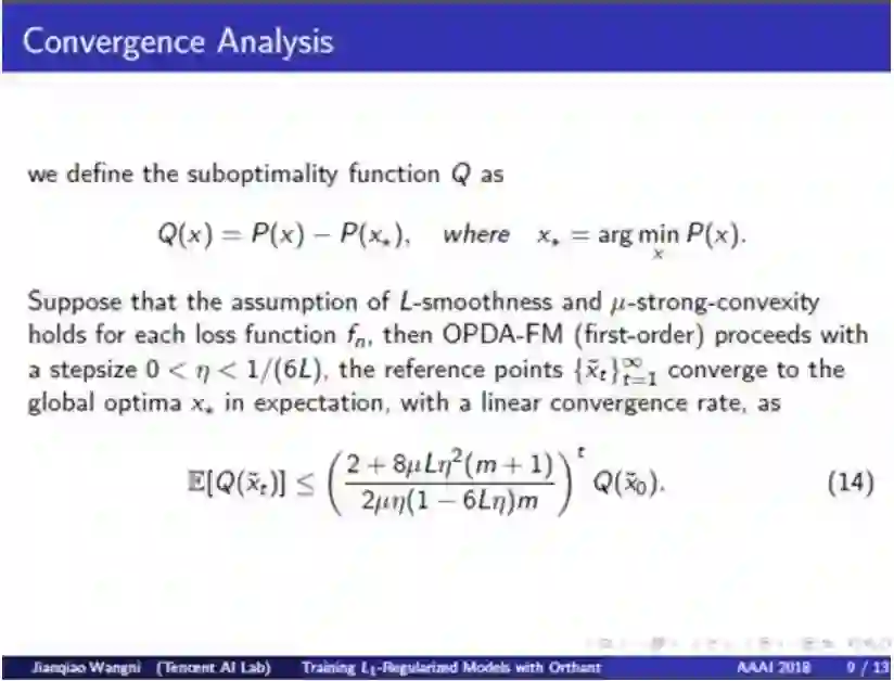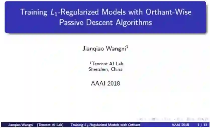 腾讯 AI Lab 共有 12 篇论文入选在美国新奥尔良举行的国际人工智能领域顶级学术会议 AAAI 2018。腾讯技术工程官方号独家编译了论文《训练 L1 稀疏模型的象限性消极下降算法》(Training L1-Regularized Models with Orthant-Wise Passive Descent Algorithms),该论文被 AAAI 2018 录用为现场陈述论文 (Oral Presentation),由腾讯 AI Lab 独立完成,王倪剑桥为论文唯一作者。