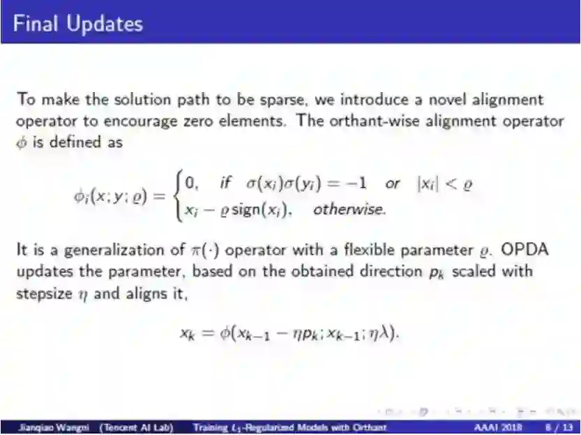 AAAI 2018 | 腾讯AI Lab现场陈述论文:训练L1稀疏模型的象限性消极下降算法
