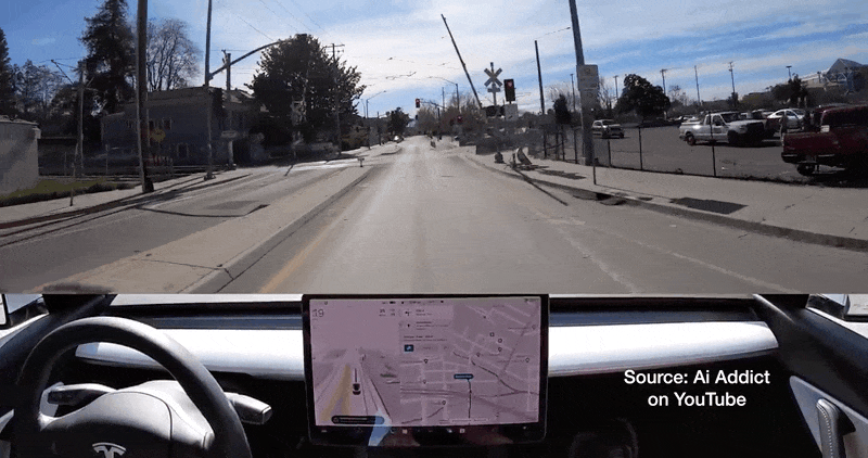 和大多数半路出家的 UP 主一样,AI Addict 视频并没有太复杂的剪辑和特效,都是 Bernal 和自己朋友开着他的特斯拉在硅谷开车,使用的是最新发布的 FSD Beta 软件公测版本。