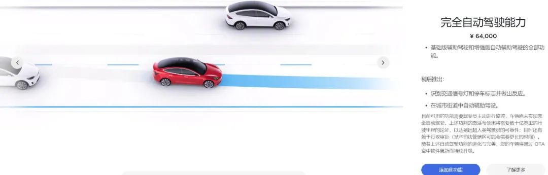 若想使用这种技术,车主必须首先购买 「完全自动驾驶能力」选装包,在美国需预付 12000 美元或每月 199 美元(中国是 64000 元),然后获得并保持较高的驾驶员安全评分,该评分由监控驾驶习惯的特斯拉软件决定。