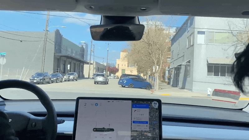 在视频的第 11 分 58 秒处,特斯拉 FSD Beta 系统开始驶入十字路口,而此时 Bernal 的 Model 3 正前方有一辆车正在穿过,他险些撞到另一辆车。
