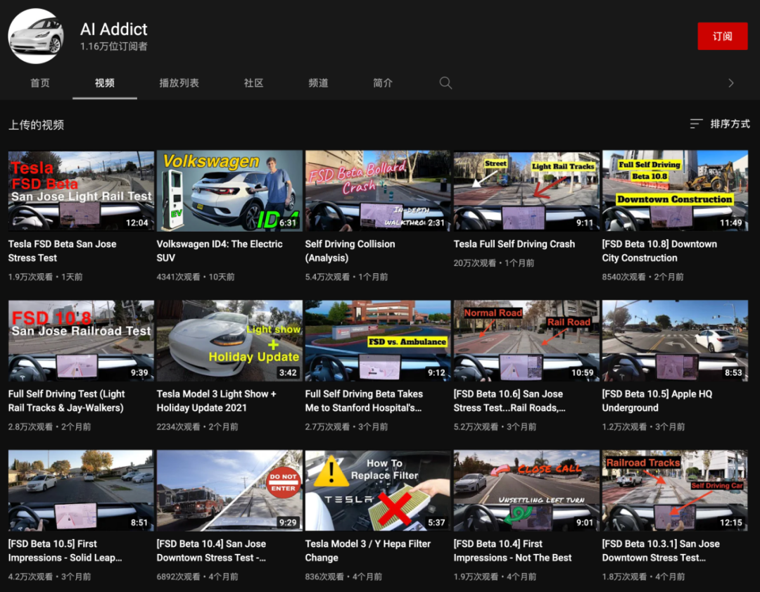 AI Addict 频道,最近已不止是评测特斯拉:https://www.youtube.com/c/AIAddict