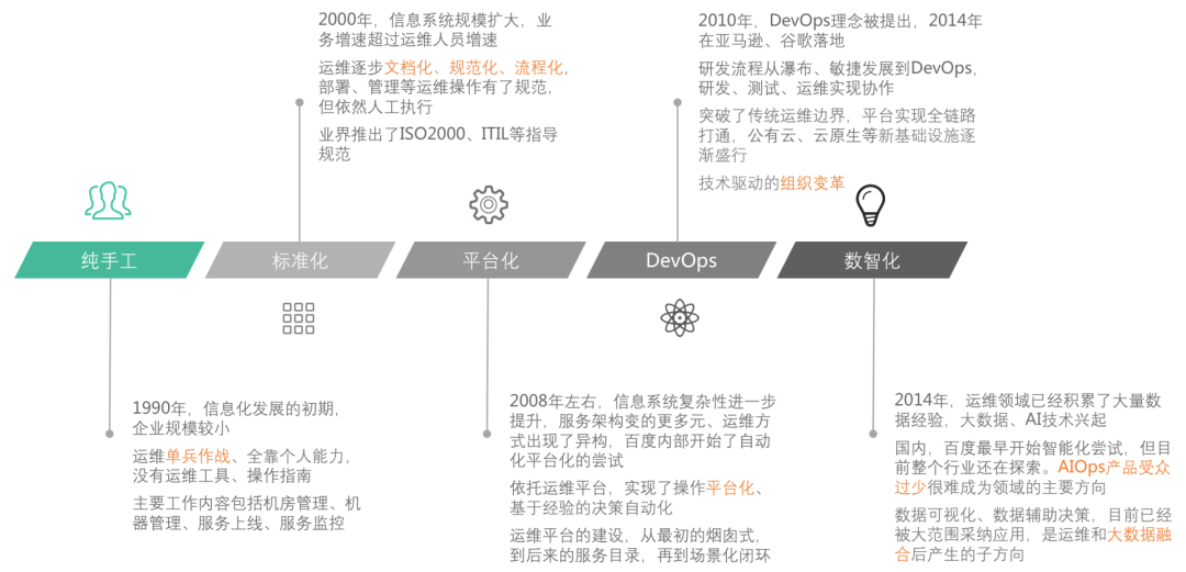 传统运维,职责是将工业制成品组装成服务、交付给用户,并维持服务运转;特点是强依附于业务