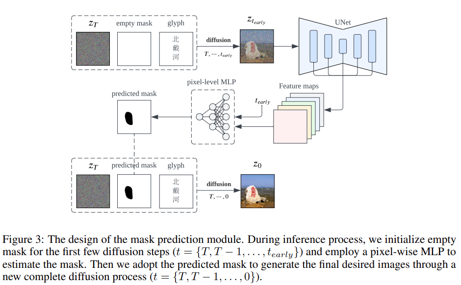 在自然图像背景中嵌入字符还需要考虑一个关键问题,那就是在避免影响相邻自然图像像素的同时,还要精确地控制文本像素的生成。为了在自然图像上呈现完美的汉字,作者精心设计了两个集成到扩散合成模型中的关键组件,即位置控制和字形控制。