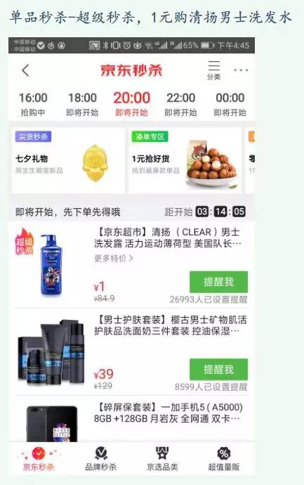 像16、18点两个流量较低的场次就不提供超级秒杀,估计是出于有限资源合理分配的考虑(可提供折扣的商品、消费者的注意力/精力等,都是稀缺资源)。