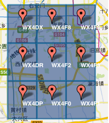 字符串越长,表示的范围越精确。如图所示,5位的编码能表示10平方千米范围的矩形区域,而6位编码能表示更精细的区域(约0.34平方千米)
