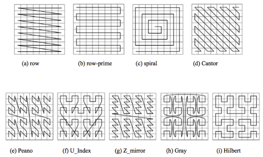 这种类型的空间填充曲线的优点是将二维空间转换成一维曲线(事实上是分形维),对大部分而言,编码相似的距离也相近, 但Peano空间填充曲线最大的缺点就是突变性,有些编码相邻但距离却相差很远,比如0111与1000,编码是相邻的,但距离相差很大。