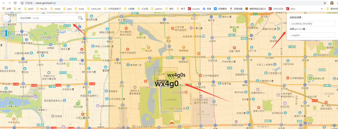 下面以北海公园附近随便一个位置为例介绍GeoHash算法的计算步骤,先用百度 GPS反定位系统查找看下经纬度。