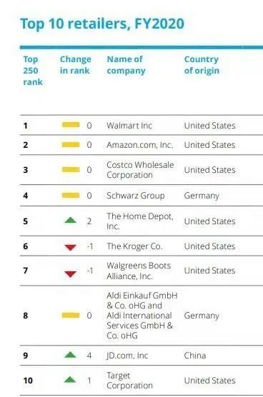 【中国零售商首次跻身全球零售十强:京东位列第九】