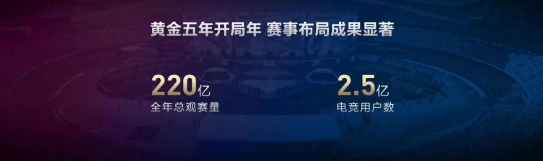 腾讯电竞也公布自己的成绩单,以英雄联盟系列赛事与王者荣耀系列赛事为“双火车头”布局,多领域发展的11大电竞赛事高速增长,全年总观赛量突破220亿人次,电竞用户数突破2.5亿;