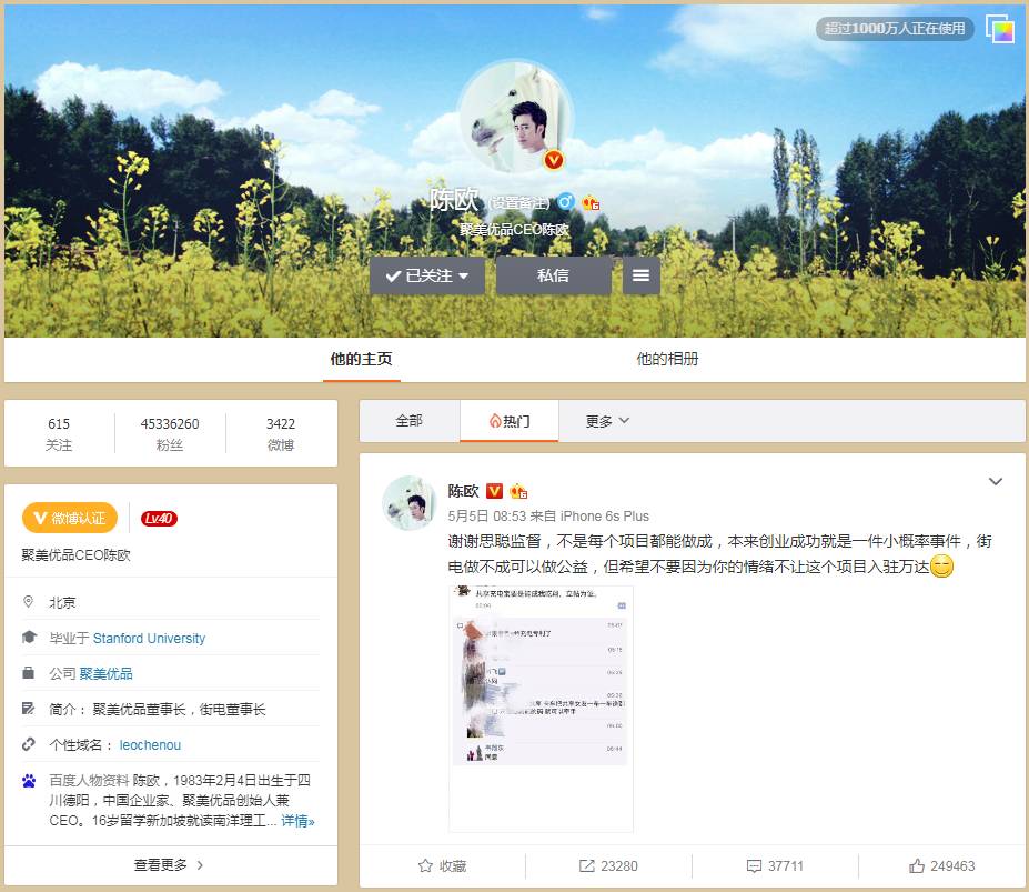 这并不是陈欧第一次发现社交媒体以及个人品牌的力量。