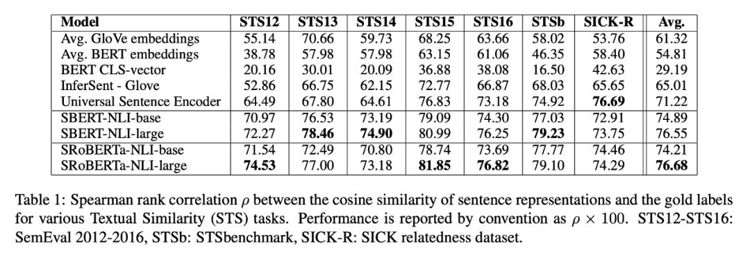这减少了寻找最相似的配对的努力,从使用BERT / RoBERTa的65小时减少到使用SBERT的5秒,同时保持了BERT的准确性。