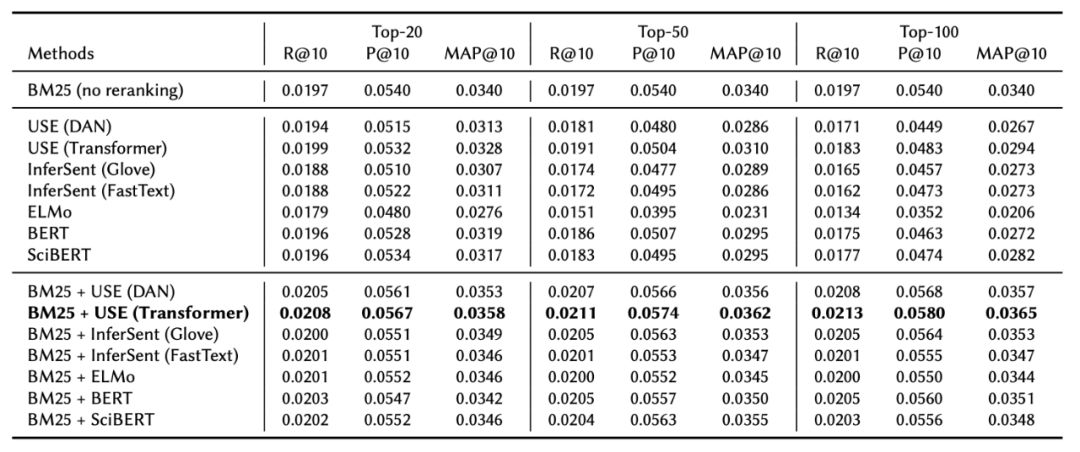 最后,BERT和SciBERT使用BERT-as-server是重排序100个标题最慢的,大约需要4.0秒。这意味着它们不能用于实时重排序推荐,除非提供更高的计算资源(如GPU或TPU)。