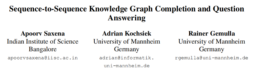论文题目:Sequence-to-Sequence Knowledge Graph Completion and Question Answering