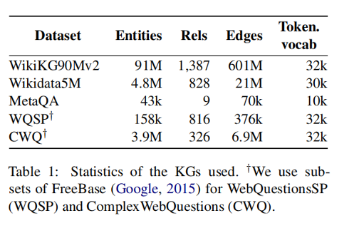 对于 KGQA,使用链接预测任务在背景 KG 上预训练模型。这种预训练策略类似于其他 KGQA 工作中使用的“KGE 模块训练”。然后对相同的模型进行微调以进行问答。因此,采用与 Roberts 等人相同的策略将一个新的任务前缀(预测答案:)与输入问题连接起来,并将答案实体的提及字符串定义为输出。 这种统一的方法允许将 KGT5 应用于任何 KGQA 数据集,而不管问题的复杂性如何,并且不需要实体链接等子模块。