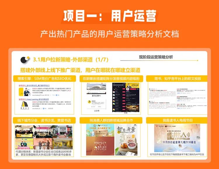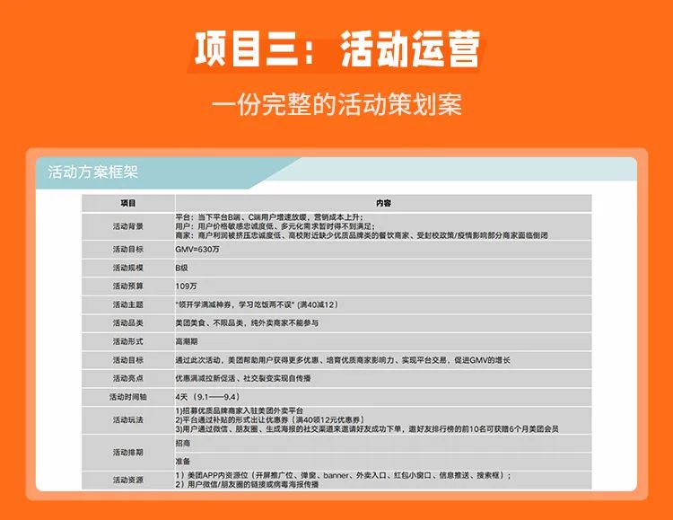 让你能够切实掌握项目的操盘思路、方法等,提升你的项目能力,学习目标拆解,项目规划管理能力,积累自己的方法论,输出一份有竞争力的项目作品集。