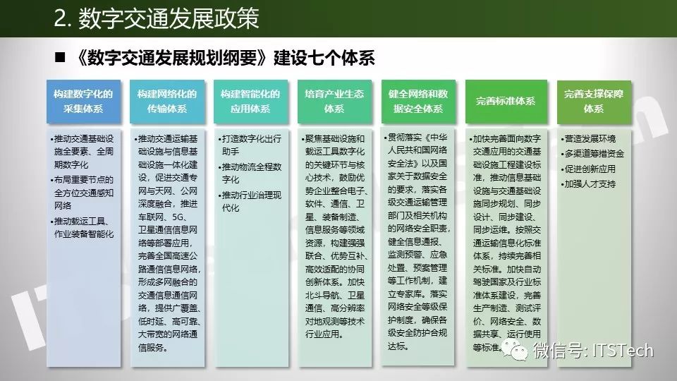 2019年7月,交通运输部印发了《数字交通发展规划纲要》。《纲要》提出,我国数字交通发展要以数据为关键要素,赋能交通运输及关联产业,推动模式、业态、产品、服务等联动创新,提升出行和物流服务品质,让数字红利惠及人民。要坚持世界眼光、国际标准、中国特色,以试点为重要手段,通过典型引路,逐步形成数字交通发展的中国经验和中国方案。