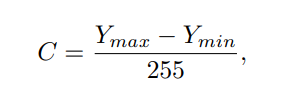 作者先把图像从RGB转到YCBCR,然后对于每个patch(估计是用了划窗的patch?),计算C的值,对比度。对比度低的,说明图像细节信息少,可能比较平滑,去掉,不用于训练。Ymax and Ymin denote the 99% and 1% value of the Y channel。公式如下: