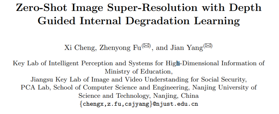 论文题目:Zero-Shot Image Super-Resolution with Depth Guided Internal Degradation Learning