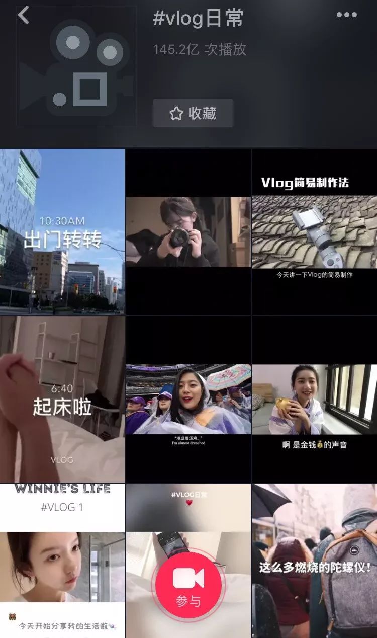 抖音似乎在试图改写规则——时间限制1分钟,缩短时间,降低门槛。抖音还在站内发起Vlog相关主题挑战,鼓励所有人都来参与生活记录,由此也产生了一些非传统定义的Vlogger。