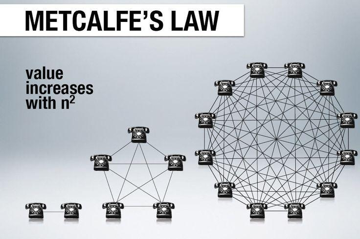 前文已经提到过了,在网络效应之下,网络的价值和这个网络节点数的平方成正比。