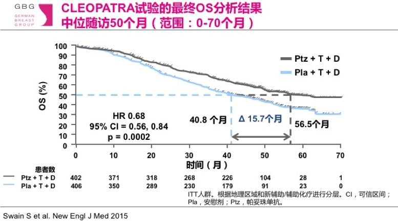 CLEOPATRA研究确立了帕妥珠单抗+曲妥珠单抗+多西他赛的一线治疗地位