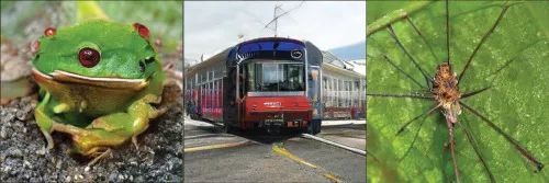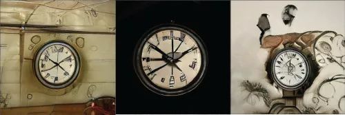 毫无疑问,这三幅图展示的都是时钟,但区别于现实中的实物,这些钟更像人梦里的场景:诡异的字母、多余的指针。负责任的说,这些是BigGAN生成图像中的常见问题,它不能学习数据集里的各种字母和字符,再加上GAN本身不提供计数功能,所以我们经常能在里面发现有很多条腿的蜘蛛和眼睛长太多的青蛙,有时还可以看到有两个火车头的火车。