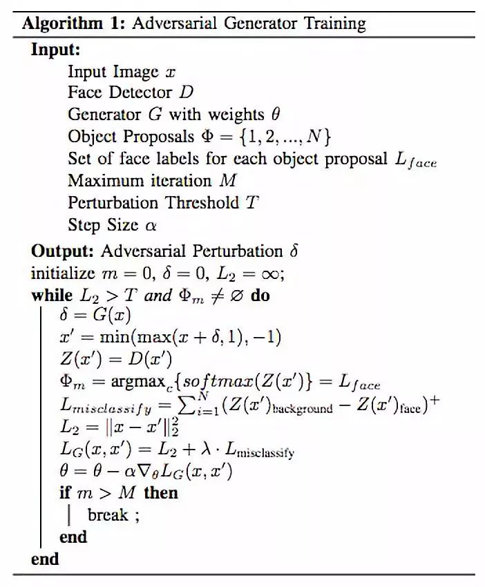 为了产生对抗干扰,研究人员提出针对基于预训练Faster R-CNN人脸检测器训练一个生成器。给定一个图像,生成器将产生一个小的干扰,可以添加到图像中以欺骗人脸检测器。人脸检测器只在未受干扰的图像上进行脱机训练,因此对生成器的存在浑然不觉。
