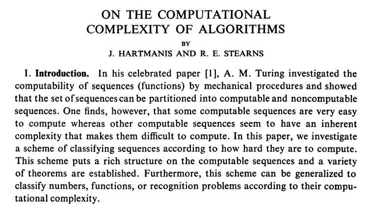 这篇论文开辟了计算机科学的一个新的研究领域,即「计算复杂性」,并奠定了它的理论基础,也让Hartmanis和Stearns最终拿到了图灵奖。