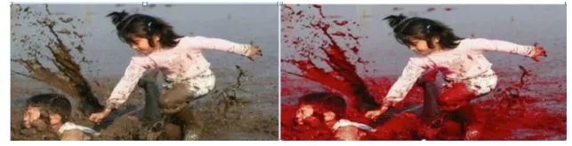 有一点可以肯定的是,颜色会影响人类情感的表达。不然,买那么多种口红就没意义了。 不同的色彩也能影响人对观察到的事件的判断,甚至给出截然相反的结论,如图5的着色。 颜色有的时候还可以帮助掩饰真实情感,如用艳丽的口红来掩饰不愉快的心情。