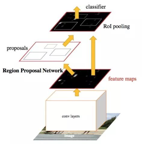 针对 SPP-Net 算法的问题,2015 年微软研究院的 Ross B. Girshick 又提出一种改进的 Fast R-CNN 算法,借鉴 SPP-Net 算法结构,设计一种 ROI pooling 的池化层结构,有效解决 R-CNN 算法必须将图像区域剪裁、缩放到相同尺寸大小的操作。提出多任务损失函数思想,将分类损失和边框回归损失结合统一训练学习,并输出对应分类和边框坐标,不再需要额外的硬盘空间来存储中间层的特征,梯度能够通过 RoI Pooling 层直接传播。但是其仍然没有摆脱选择性搜索算法生成正负样本候选框的问题。