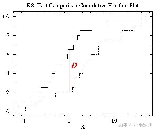 3. 通过两个数据的累积分布图直接最大垂直距离描述两数据的差异