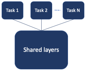 我们想从硬参数共享(hard parameter sharing)的基本方法开始。硬共享意味着我们有一个共享子网,这个子网是特定于任务的。