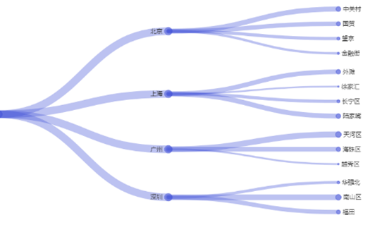 上图所示的是北上广深的加班区域情况,线条越粗意味着加班越猛。北京中关村,见证了中国互联网的发家,大厂比比皆是;广州海珠区,以科技行业为主;深圳南山区,则是国家级科技园。