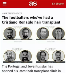 足坛巨星C罗也开始投资植发行业,以2500万欧元入股一家植发机构,C罗表示“脱发在欧洲是一个常见的问题,我们想帮助到大家!”