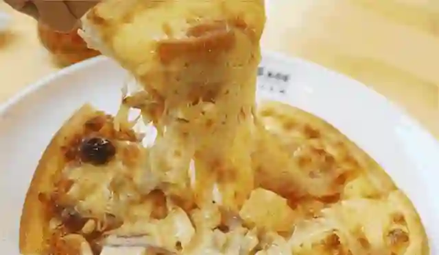 西餐口的披萨也很受欢迎,大小刚好够一个人吃,还会配小碗沙拉,按喜好挤好酱料就可以端走啦。师傅放芝士也是很大方,厚厚的拉丝太诱人啦。