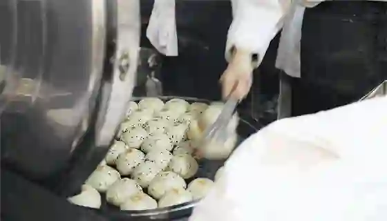 新出炉牛肉包,刚一出锅总是被一抢而光。