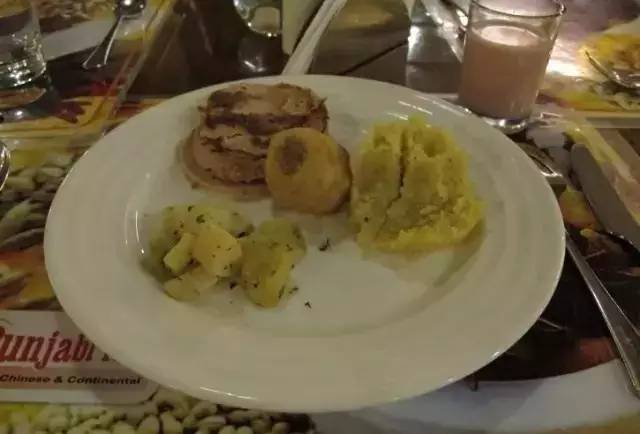 这糊糊里面可能烧的是肉,也可能是素菜。这印度人对于素菜,没有我们这样清炒的概念,从豆子到花菜,从叶子到根茎,全都切碎煮在糊糊里面。