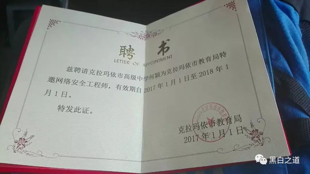 PS:此次渗透测试是在取得授权情况下进行的,合法正规的一次渗透测试,请勿利用本文提及的方法在未经授权情况下对任何一个网站进行渗透测试,出现的后果与本社团及作者无关。最后附上两张社长被教育局招安的聘书。