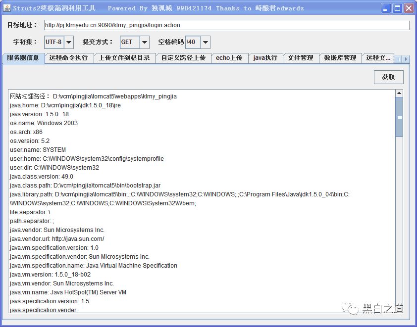 这里主要讲下这个st2漏洞利用工具 这款工具好处在于有列出了服务器目录的功能 当时我一开始想直接在登陆口目录传jsp木马拿shell的时候 连接的时候总会跳转到登陆口 Google了下 解决办法是传jspx 但是试了都不行。