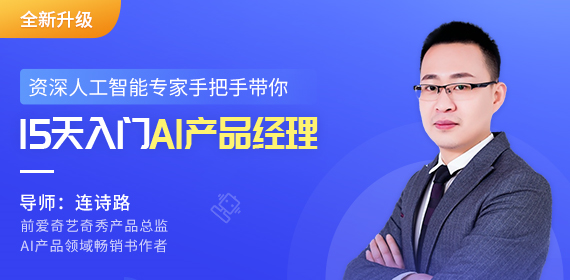 为此,人人都是产品经理旗下的起点学院,特别邀请到了在智能产品领域深耕多年、前爱奇艺奇秀产品总监@连诗路 老师,共同打造了《15天入门AI产品经理》课程,教你如何系统入门AI产品经理;帮你在AI时代先人一步,少走弯路。