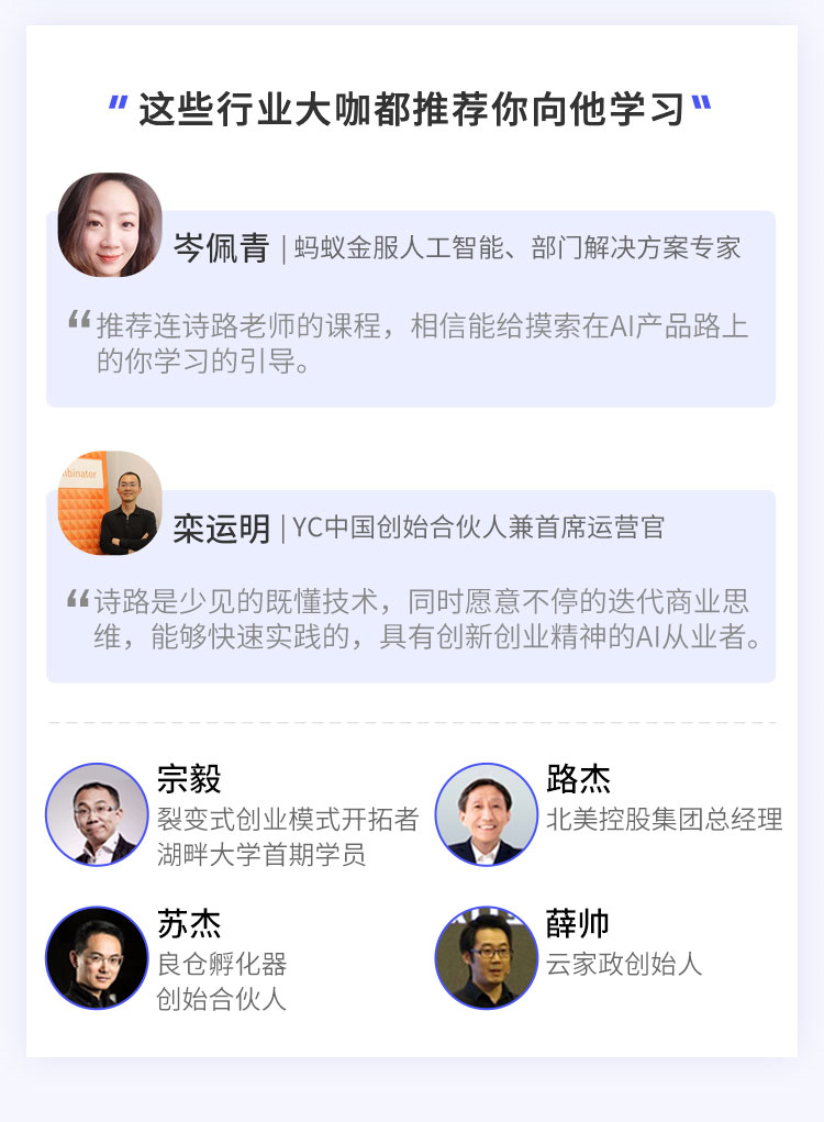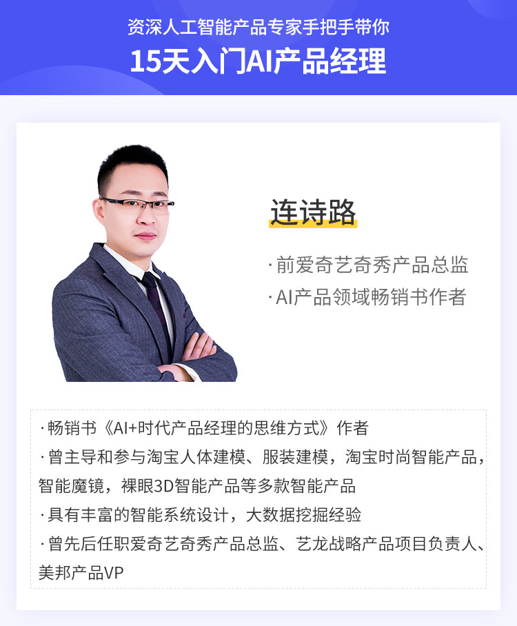 课程由前爱奇艺奇秀产品总监,AI产品领域畅销书作者@连诗路 老师主讲。