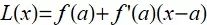 再次, 已知函数 f 和特殊值 a, 我们找出通过曲线 y = f(x) 上点(a, f(a)) 的切线. 这条切线的斜率为 f'(a), 其方程为 y-f(a)=f'(a)(x-a), 如果设切线为 y=*L*(x), 则