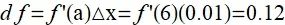且 a=6, 则 f'(x)=2x, 所以 f(6)=12. 如果想知道当 x 从 6 增加 0.01时候, f(x)的变化, 于是有